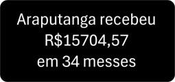 Considerando o número de habitantes registrado no Censo 2022, Araputanga tem 14.786 habitantes. Fazendo as contas, os R$232.207.831,31 depositados nas contas da Prefeitura, significa que recebeu R$ 15.704,57 por habitante.
