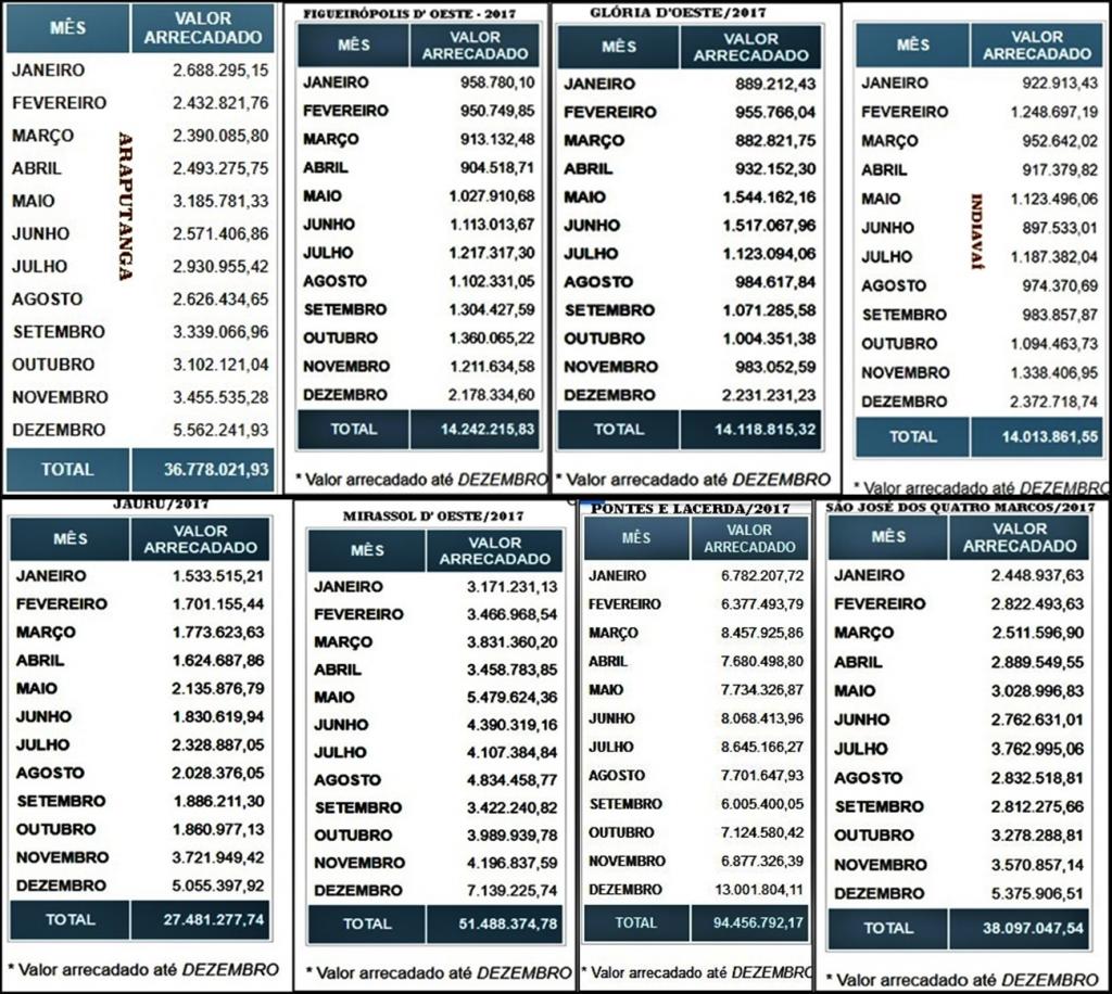 por - Sebastião Amorim - O montante arrecadado pelos cofres municipais de onze municípios da região, totalizou R$478.440.234,49 (quatrocentos e setenta e oito milhões, quatrocentos e quarenta mil, duzentos e trinta e quatro reais), foram disponibilizados sob a responsabilidade dos prefeitos de cada cidade (descritas no próximo parágrafo), cujos recursos são investindos, conforme preconiza a Constituição Federal e o conjunto de leis brasileiras.