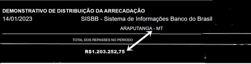 Por – Sebastião Amorim – Levantamento realizado junto ao Portal do Banco do Brasil, feito neste sábado (14/01), revelou que o município de Araputanga recebeu, nos primeiros dez dias de 2023 R$1.203.252,75 (um milhão, duzentos e três mil, duzentos e cinquenta e dois reais).