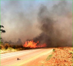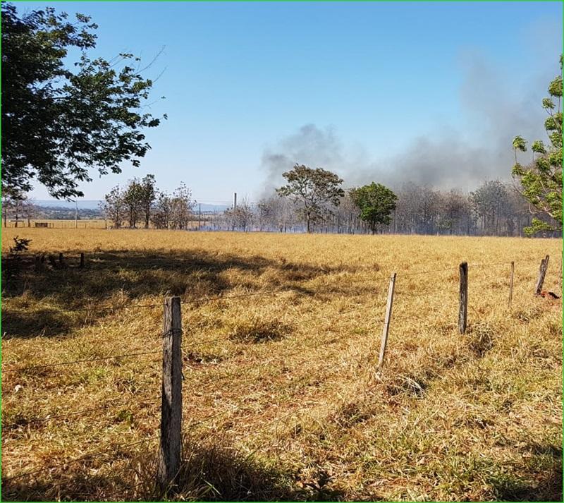 Um incêndio consumiu as pastagens da propriedade do Senhor Miguel Oliveira, às margens da MT-175, próximo à entrada para o Assentamento Chico Mendes, na tarde de domingo (11/08). Informações obtidas com populares indicam que o fogo teve origem nas faíscas oriundas da rede elétrica que estaria encostando em folhas de árvore.