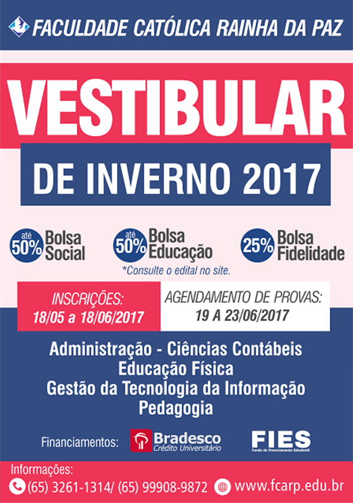 abertas para o Vestibular de Inverno 2017 para os cursos: