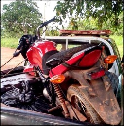 Com os mesmos foi recuperada uma motocicleta Honda CG, produto de furto em uma propriedade no distrito de Santa Clara.