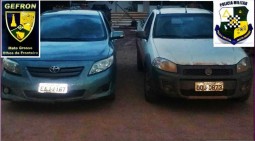 Policiais militares do Grupo Especial de Segurança de Fronteira, nesta quarta -feira (16.08), recuperaram dois veículos produtos de roubo, no assentamento Katira, em Cáceres. Foram detidos L.E.A de 20 anos e N.A.C.T de 26 anos.