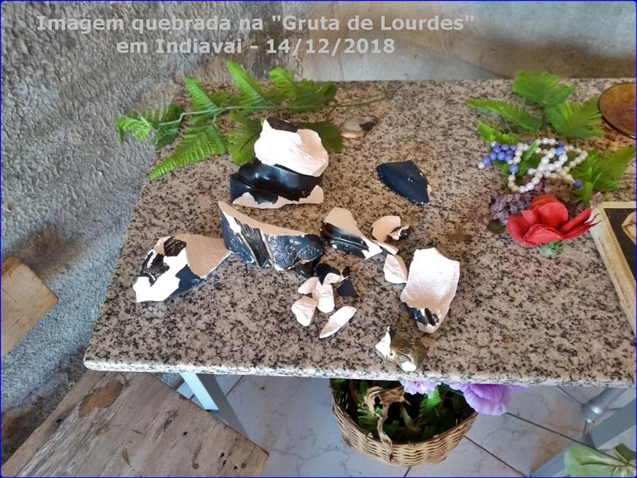 Outro iconoclasta por enquanto não identificado, atuou no Município de Indiavaí na "Gruta de Lourdes", onde quebrou uma pequena imagem. A falta de educação e de civilidade vai se materializando de forma silenciosa pela ação de vândalos.