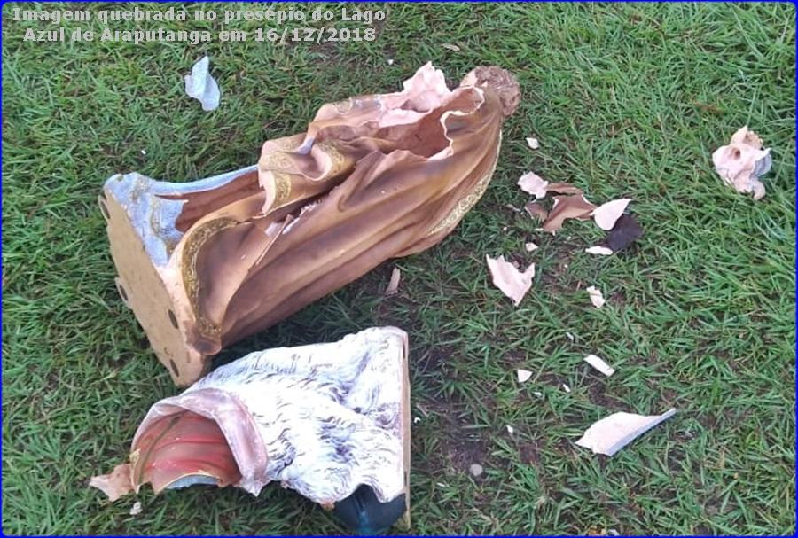ICONOCLASTIA - Presépio tem imagem quebrada, no Lago Azul de Araputanga