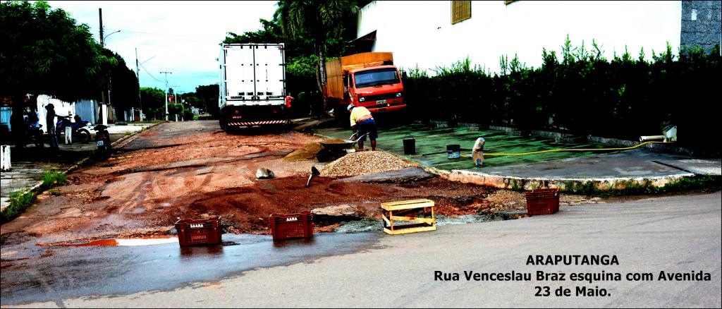 Enquanto o Governo Municipal não pode acabar com os buracos no asfalto, para melhorar a trafegabilidade urbana, uma iniciativa particular acontece neste momento (31/03), na esquina da Avenida 23 de Maio com a Rua Venceslau Braz, onde uma pessoa que pediu para não ter o nome divulgado, comprou com recursos próprios, areia, brita, cimento e, contratou um pedreiro para recuperar alguns metros da via pública em trecho que dificulta demais a passagem de veículos; a reportagem apurou que caminhões que passavam no local, estariam arrastando a parte traseira do chassi, no extenso e profundo buraco.