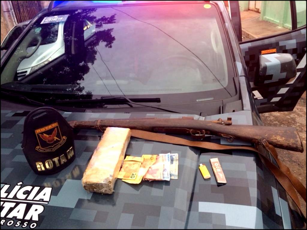 Além da arma, os policiais apreenderam na casa uma barra de maconha, com aproximadamente 1kg.