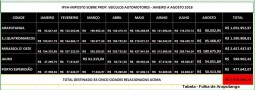 IPVA – Cinco municípios receberam R$5,8 milhões nos meses Janeiro a Agosto/2018