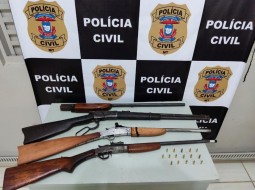 Diante das informações e com o mandado, a equipe foi até a propriedade rural e encontrou o mesmo na posse de duas espingardas calibre 22, uma carabina, e mais 16 munições de calibre 22.