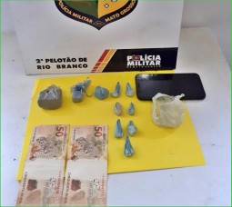 Policiais militares do Núcleo de Lambari D'Oeste (a 339 km de Cuiabá) prenderam no sábado (10.08), D.J.V.S. (25), por tráfico de drogas, no bairro Cohab Boa Esperança.
