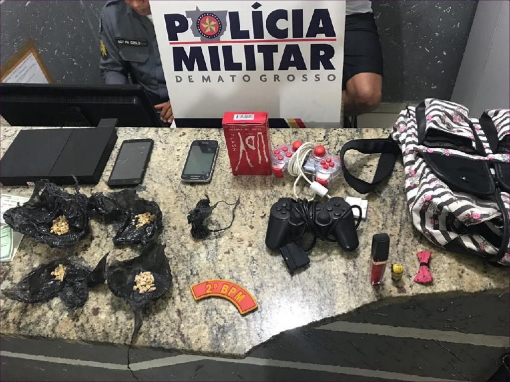Em Jaciara, na madrugada de domingo, policiais da 7º Companhia prenderam M.V.S.A na área central da cidade. Os policiais relatam no boletim de ocorrência que o suspeito conduzia uma moto Honda e teria fugido para não ser abordado. Durante perseguição, o suspeito joga uma porção de pasta base de cocaína. Já no período da noite, M.V.S.A abordou um policial e pediu desculpas por não ter parado. Até então, ele não sabia que os policiais tinham encontrado a droga no caminho. Ele foi encaminhado à delegacia.
