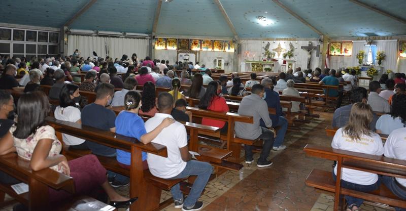 A Matriz teve todos os bancos ocupados, muitos ficaram de pé, próximo à porta de entrada e nas laterais da Igreja, enquanto outras pessoas que não conseguiram entrar, permaneceram em pé, na parte externa da Igreja.