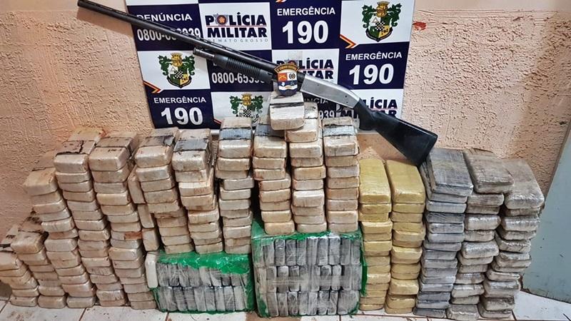 Na soma foram 236,065 kg de entorpecentes e uma escopeta calibre 12 apreendidos.