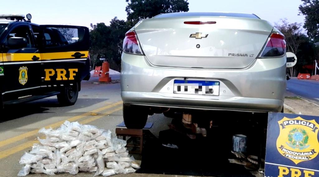 Na tarde de domingo (28), a Polícia Rodoviária Federal (PRF), apreendeu aproximadamente 24,3 kg de substância análoga à maconha e 360g substância análoga à haxixe (entorpecente extraído da mesma folha da maconha, porém mais concentrado), que estavam escondidos no veículo.