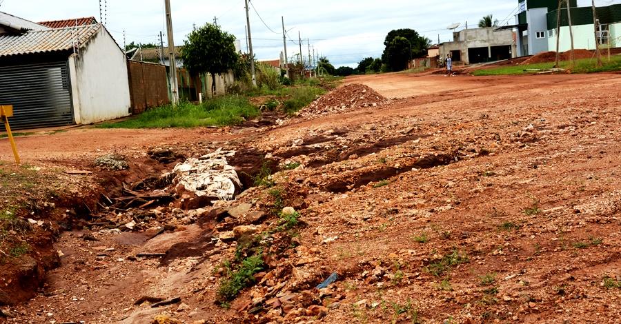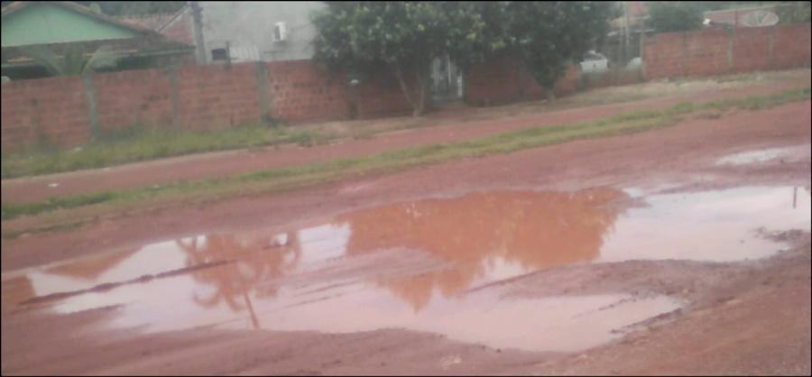 Em outro Bairro, uma das laterais da Rua Orídia Carvalho Pimenta, que separa o Loteamento Tulo Furlan do Bairro Cidade Alta, também não está em boas condições e, somente manilhamento dimensionado para atender à demanda pluvial, pode conter as valas que se abrem devido às chuvas.