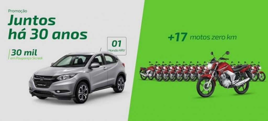 Promoção Juntos há 30 anos do Sicredi sorteia 17 motos, Carro e 30 mil em poupança
