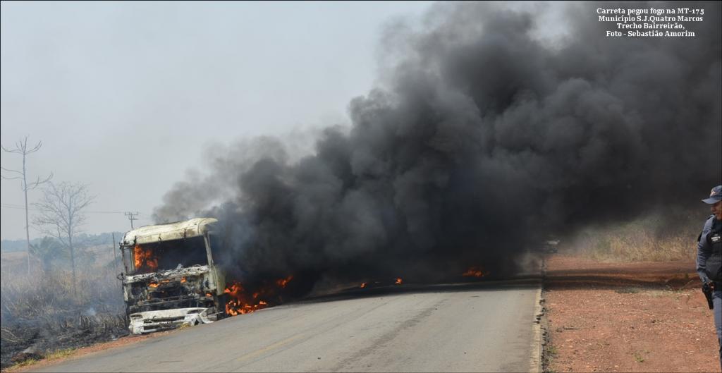 O Boletim de Ocorrência foi registrado na PM de S.J.Quatro Marcos. A Folha apurou que ao apagar, o veículo não funcionou novamente, motivo que levou o motorista buscar uma auto elétrica em Araputanga; porém, o condutor teria decidido voltar para buscar ajuda em auto elétrica de Mirassol e, encontrou a carreta em chamas (na volta).