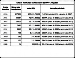 A partir das 9 horas de segunda-feira, 9 de janeiro, estará disponível para consulta o lote multiexercício de restituição do Imposto sobre a Renda da Pessoa Física, contemplando as restituições residuais, referentes aos exercícios de 2008 a 2016.