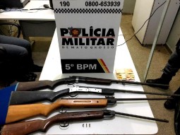 Na casa dos suspeitos a polícia militar do 5º Batalhão localizou quatro armas de cano longo, sendo de calibres 28 e 20 e duas aparentando ser de pressão, três munições intactas de calibre 22, uma lanterna e apetrechos para fabricação de cartuchos. Uma viatura de São José do Povo também esteve no local.