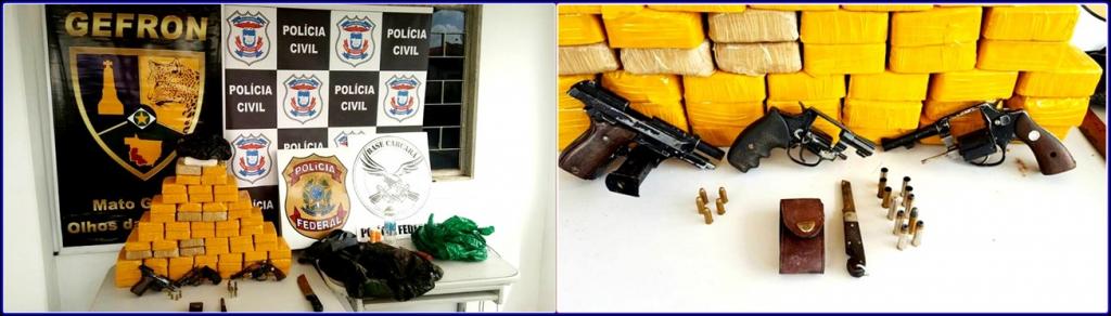 Em mais uma ação conjunta entre as forças de segurança da fronteira, desta vez equipes do Gefron, PF e PJC, por meio de denúncia anônima, apreenderam cerca de 64 tabletes de pasta base de cocaína e 03 armas de fogo, a aboedagem ocorreu na região do Limão, rodovia BR 070.