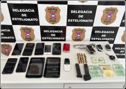 Na residência do detido, os policiais apreenderam uma pistola com a numeração raspada, três veículos automotores e diversos aparelhos celulares.