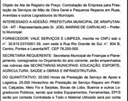 ARAPUTANGA - Município aderiu à Ata de Pontes e Lacerda, para contratar R$1,18 milhões em mão de obra