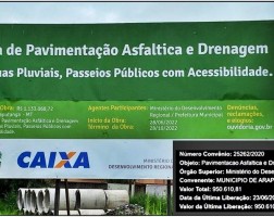 QUASE UM MILHÃO – Há 300 dias, Araputanga recebeu recurso para asfalto, drenagem e acessibilidade