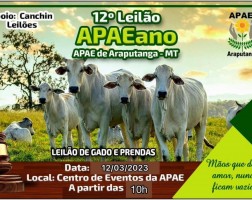 DIA 12 DE MARÇO - APAE-ARA realizará o 12º leilão