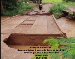 ARAPUTANGA – Buracos nas cabeceiras de uma das pontes do Córrego das Pitas, próximo à Chácara do Sato