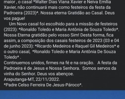ARAPUTANGA – Dois novos integrantes na composição dos festeiros da Festa da Padroeira 2023