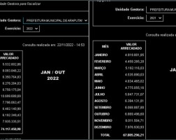 Em 2022 as contas da Prefeitura Municipal de Araputanga já receberam R$ 74.117.450,98. O valor é R$6.232.154,77 a mais que o montante recebido nos doze meses...