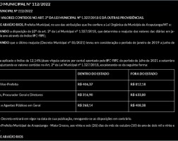 O porcentual de reajuste é da ordem 12,14% DA REDAÇÃO - O município de Araputanga reajustou em 12,14% o porcentual sobre os valores das diárias. A verba é...