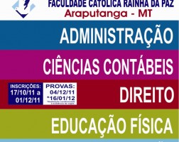 A Faculdade Católica Rainha da Paz realiza, no dia 19 de janeiro, no Centro Cultural Paulo VI, em Araputanga, a solenidade
