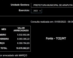 DINHEIRO – Araputanga recebeu quase R$20 milhões, no primeiro trimestre/2022