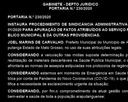 por – Sebastião Amorim - A Prefeitura Municipal de Araputanga publicou, na data de 06 de julho, instauração de Sindicância Administrativa sob o número 01/2020 para...