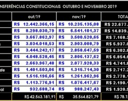 Somados, cofres municipais de onze cidades da região receberam juntos R$78,12 mi em dois meses Por – Sebastião Amorim - Nos meses de outubro e novembro/2019, os...