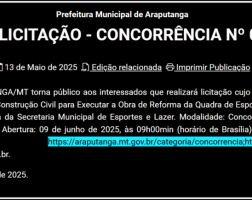 ARAPUTANGA – Anunciada licitação para reforma da quadra de esportes do Bairro Cidade Alta