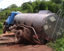 O condutor de caminhão Mercedes Benz 1113 placas HQH 2779 teve o caminhão tragado na ponte do Córrego Taquaral, na Comunidade Rural de Mesmo nome, no município de Araputanga.