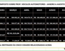 IPVA – Cinco municípios receberam R$5,8 milhões nos meses Janeiro a Agosto/2018
