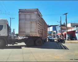 DE NOVO - Veículo atingido por carreta no Centro de Araputanga
