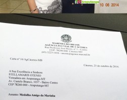 O comunicado à vereadora foi feito através de carta assinada pelo Capitão-Tenente Josinaldo de Souza Sobrinho, da Marinha cacerense