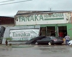 Informações da proprietária da Tanaka Agropecuária, além do desmoronamento da fachada, o prédio também sofreu danos elétricos