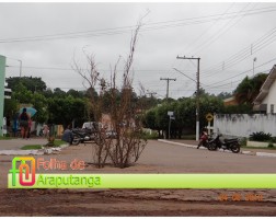 Galhos sinalizam buraco em esquina na região central de Araputanga