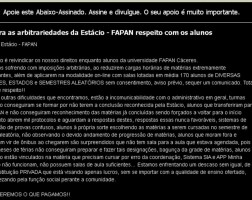 por – Sebastião Amorim – Petição pública postada na internet pede apoio Contra arbitrariedades da Estácio/FAPAN de Cáceres-MT e, respeito com os alunos. Clique AQUI e...