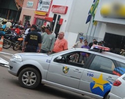 Assaltante leva tiro de polícia ao roubar mulher em banco de MT