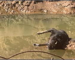 ARAPUTANGA – Animal morto dentro do Córrego da Garrucha