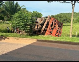 URGENTE - Caminhão desgovernado capota próximo ao Córrego da Garrucha