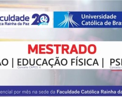 Mestrado em Educação - Conceito 4 - CAPES Carga horária: 540 horas (Um encontro presencial por mês na sede da Faculdade Católica Rainha da Paz, Araputanga/MT) Nº de Vagas = 22...