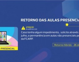 RETORNO ÀS AULAS PRESENCIAIS HÍBRIDAS EM 26/07/2021 A Diretoria da FCARP, tendo em vista a AUTORIZAÇÃO da Equipe da Vigilância Sanitária da Secretaria Municipal de Saúde do...