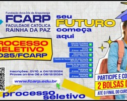 A Faculdade Católica Rainha da Paz (FCARP) iniciou na última quarta-feira (02/10) as inscrições para o Processo Seletivo de 2025, oferecendo oportunidades para quem deseja construir...